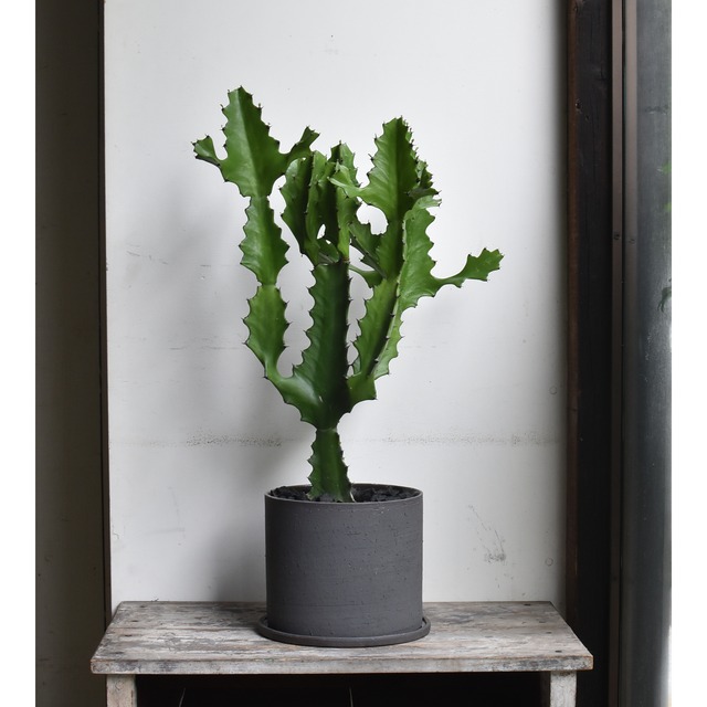 ラクテアは綴化したものや、真っ白な斑の入る品種なども出回っていますが、プレーンな葉姿は飽きが来ず、程よい主張でお部屋を彩ってくれます。乾燥に強く、比較的耐陰性もあるので、留守がちな方にもオススメです。 -------------------------------------------------------------- ●サイズ 約H610mm×W380mm×D250mm ※掲載写真の株をお届けいたします。 ※受皿付き。 ●育成のポイント 光量:充分な日光を必要とする 水量:鉢底までしっかり乾いてからたっぷりと水やり 温度:越冬のための気温 : 10℃以上 ●育て方・お手入れ方法 耐陰性のある品種ですが、ひょろひょろと細く伸びたら光量不足です。太く逞しく育てるにはしっかりと日光浴をさせましょう。水やりの際は鉢底までしっかりと乾いてから与えます。与える時は鉢底の穴から流れ出るほどたっぷりと、そのメリハリが重要になります。 枝や葉や新刺などを切ると白い樹液が出るので注意します。 ---------------------------------------------------------------------- ※植物の水切れを防ぐため、お手数ですが必ず着日をご指定くださいませ。 着日のご希望の記載がない場合、こちらからご連絡差し上げます。ご了承ください。 ----------------------------------------------------------------------