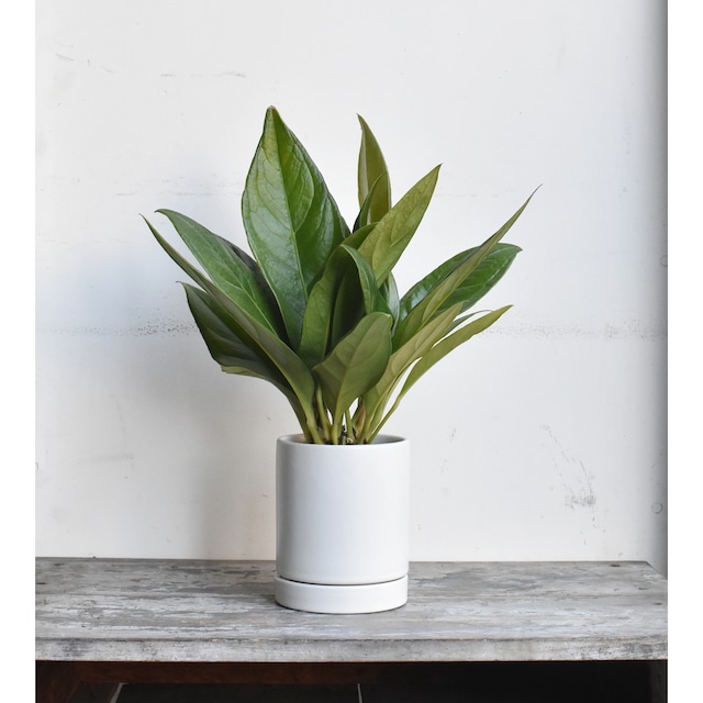 小型品種なので、小鉢仕立てでコンパクトに楽しめます。濃緑にくっきりと浮かぶ斑が美しい品種です。 清潔感のある葉姿は、キッチンやダイニングテーブルなどに飾っていただくのもお勧めです。 -------------------------------------------------------------- ●サイズ 約H420mm×W350mm×D350mm(個体差あり) ※葉姿は株によって異なります。 ※受皿付き。 ●育成のポイント 光量:半日陰、木漏れ日程度の日射量が最適 水量:鉢土の表面が乾いてからたっぷりと水やり 温度:越冬のための気温 : 10℃以上 ●育て方・お手入れ方法 水やりは土の表面が乾いてから与えます。その際は鉢底から流れ出るようにたっぷりと与えてください。空中湿度の高い環境を好む品種です。特に乾燥する冬時期は、霧吹きで葉水を与えるなど、湿度を保つ工夫ができると良いでしょう。 年間を通して明るい半日陰で育てましょう。ただし、暗すぎると葉色が悪くなったり、姿が乱れてしまうので、日照不足には注意します。 ---------------------------------------------------------------------- ※植物の水切れを防ぐため、お手数ですが必ず着日をご指定くださいませ。 着日のご希望の記載がない場合、こちらからご連絡差し上げます。ご了承ください。 ----------------------------------------------------------------------