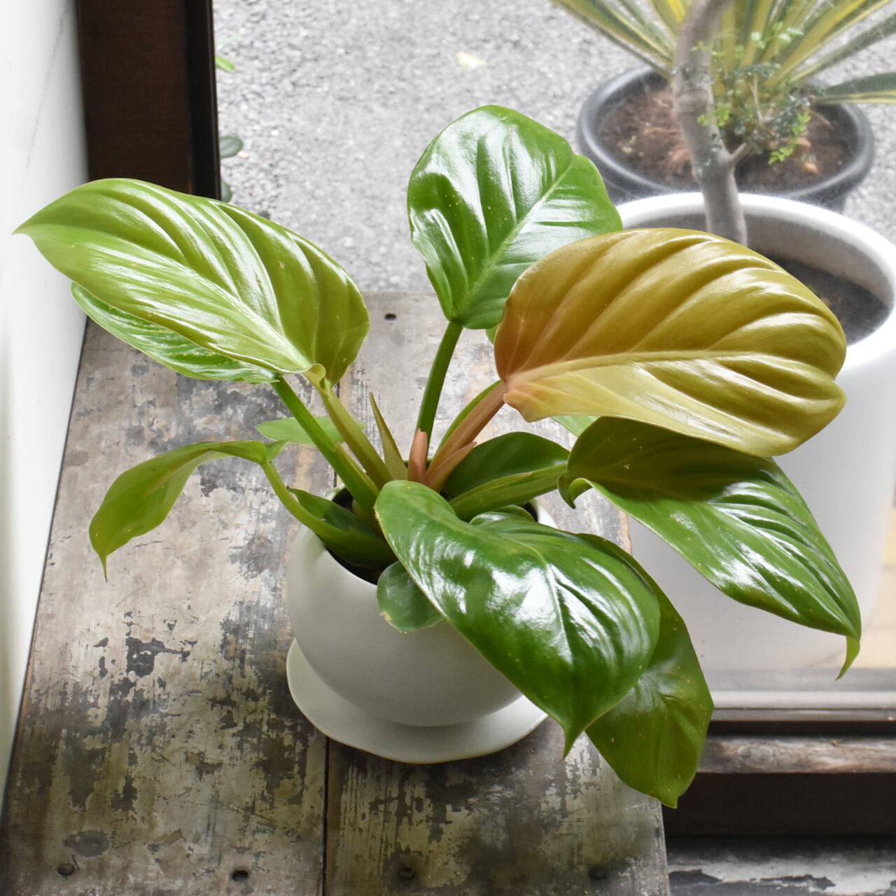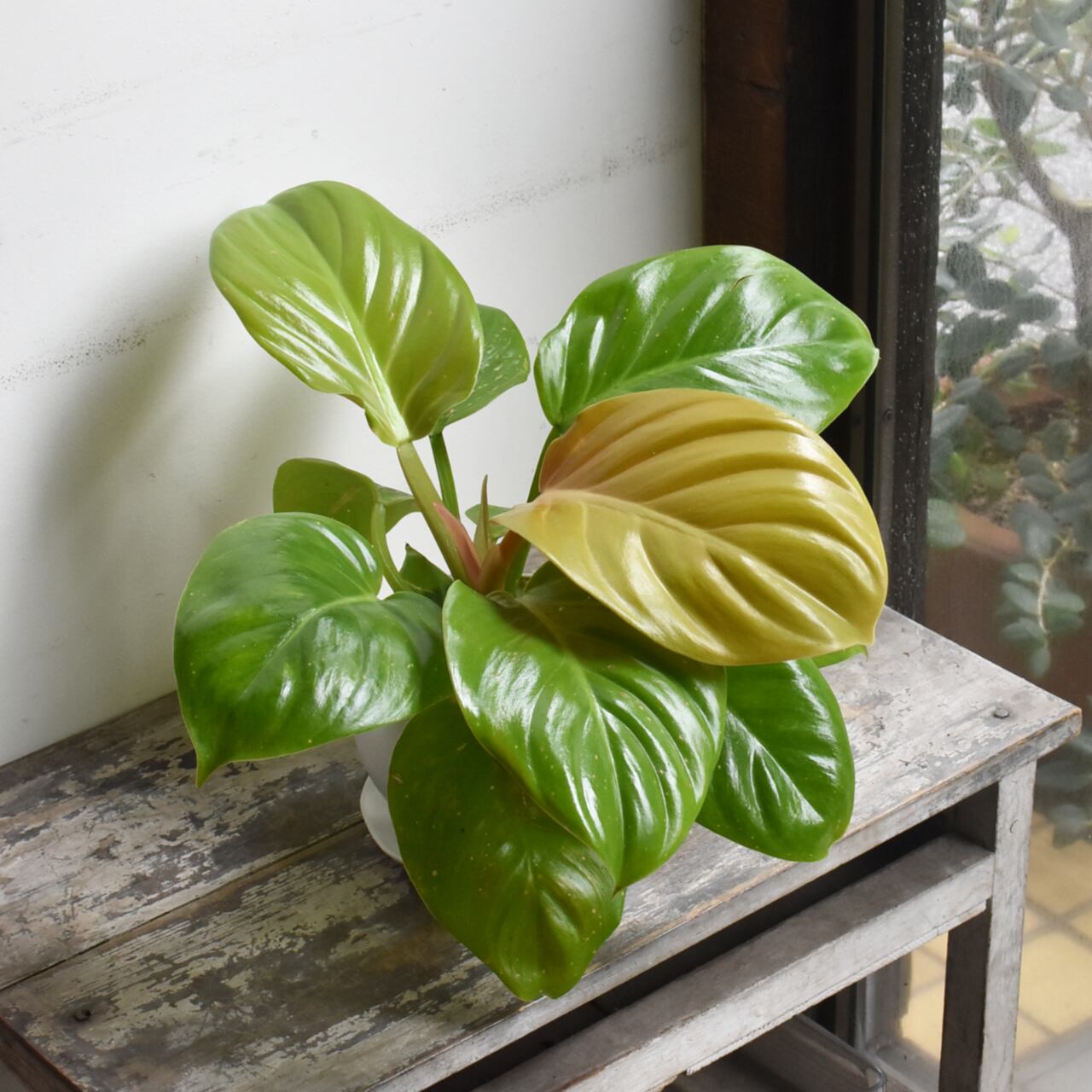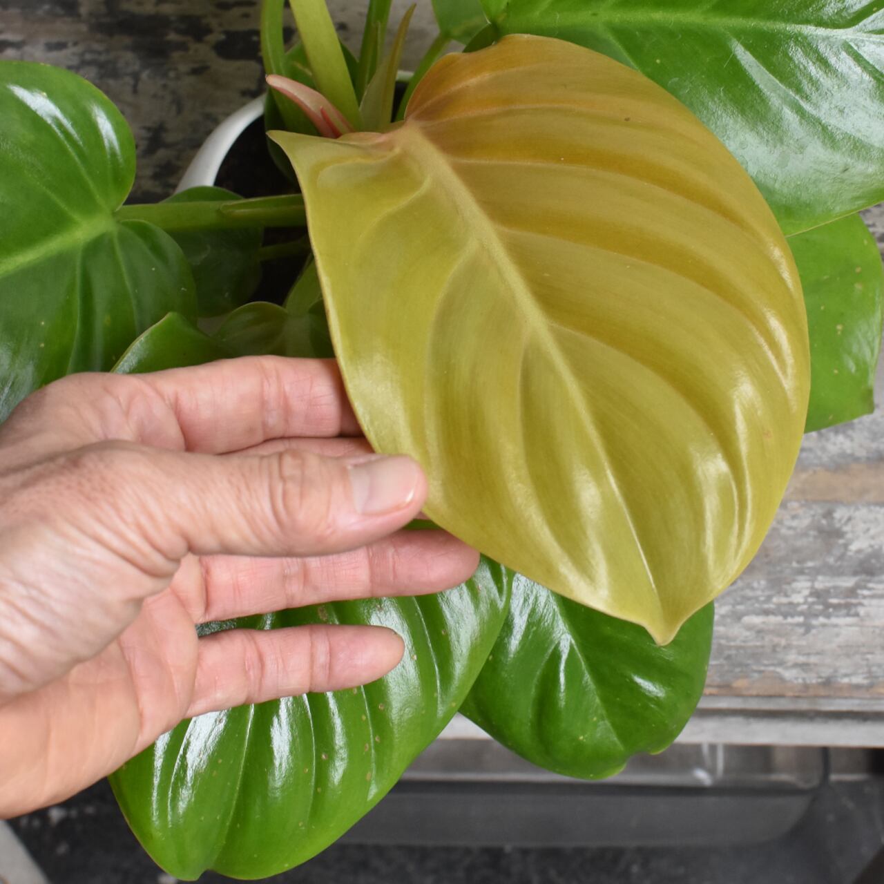 新葉がゴールドイエローに色付く希少種です。シンプルな葉姿が葉色の美しさを際立たせます。