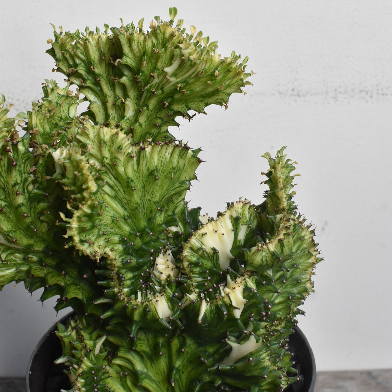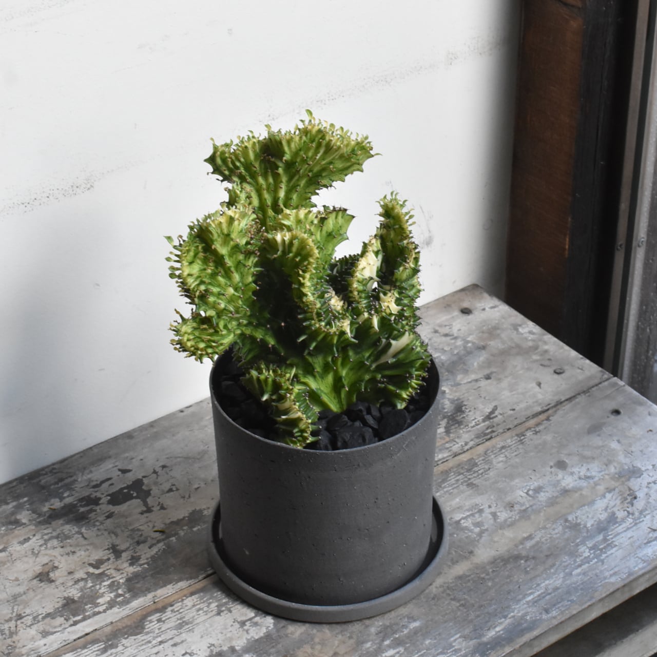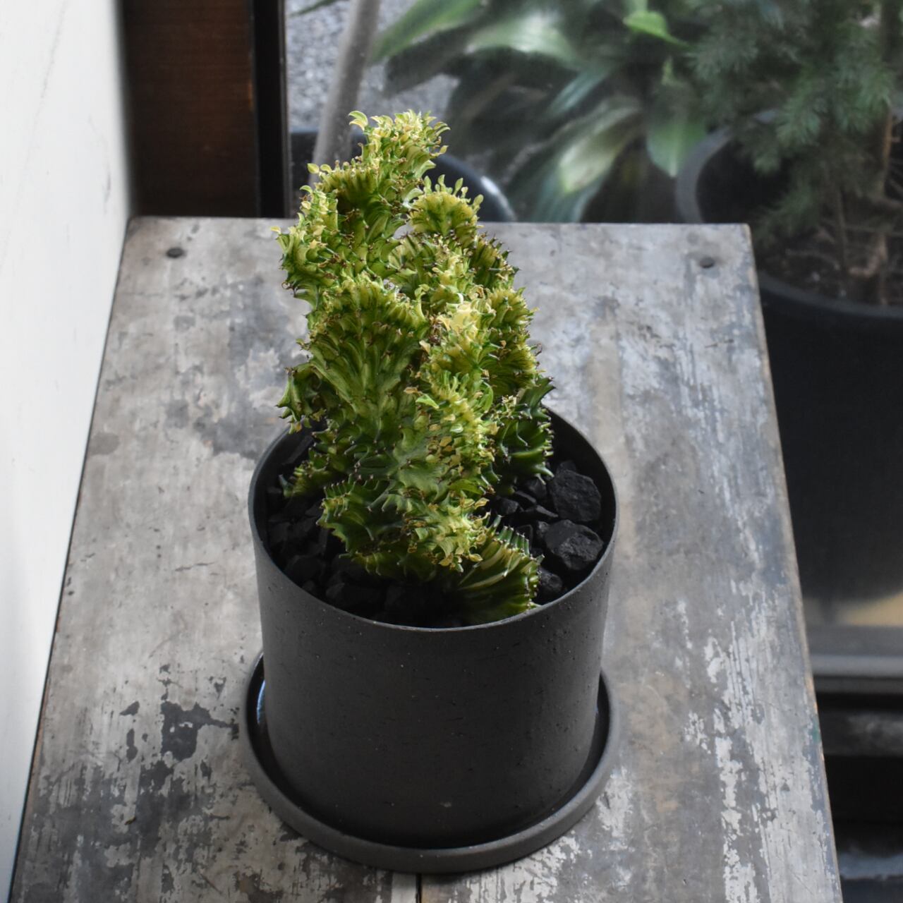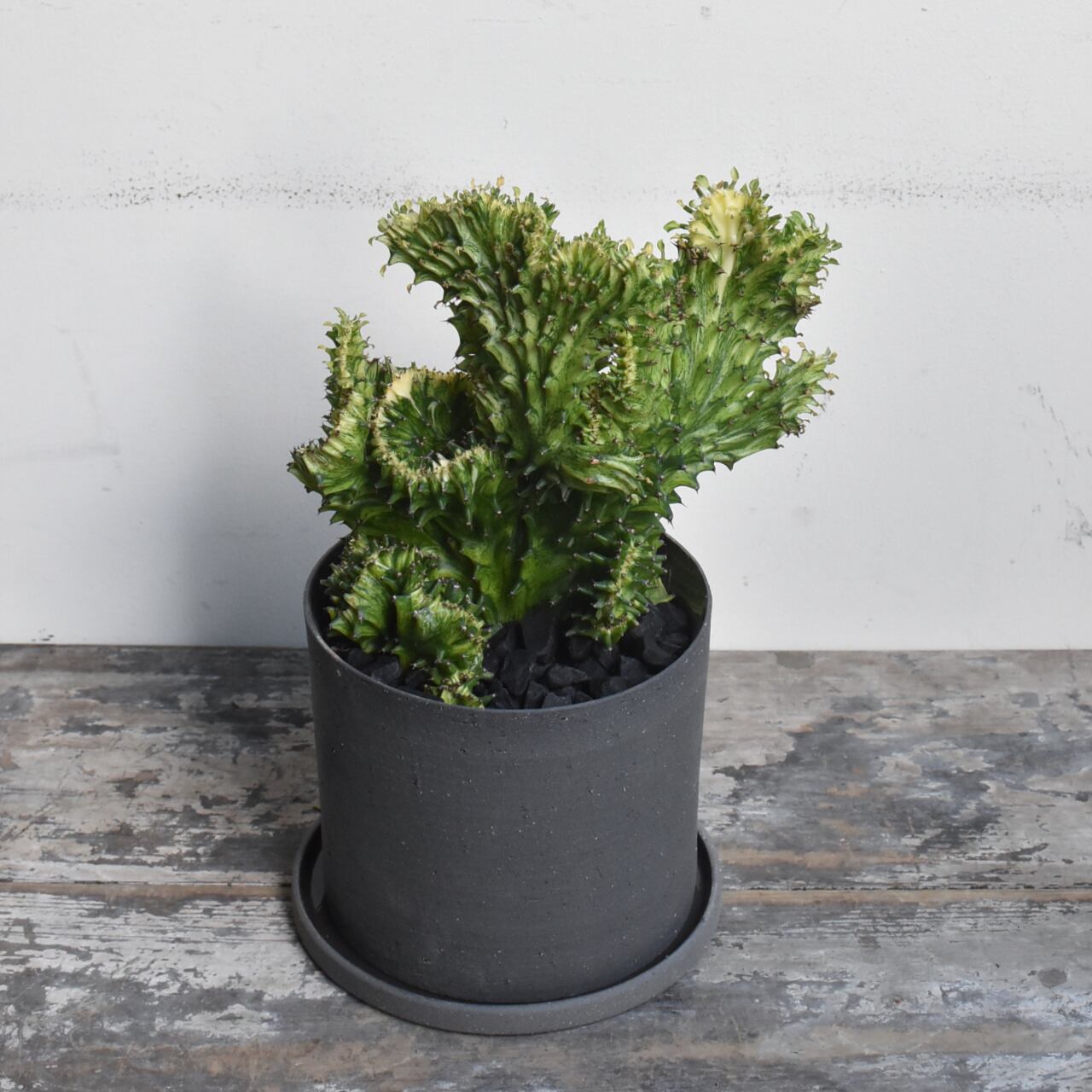 「綴化」とは、点のような小さな生長点が連続出現して帯状に広がったもの。扇が波を打つかの様な姿が魅力的です。スタイリッシュな草姿ですが、どこかユニークな雰囲気も漂います。管理は比較的簡単なのでプレゼントにもお勧めです。