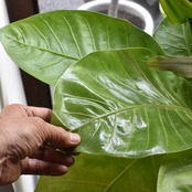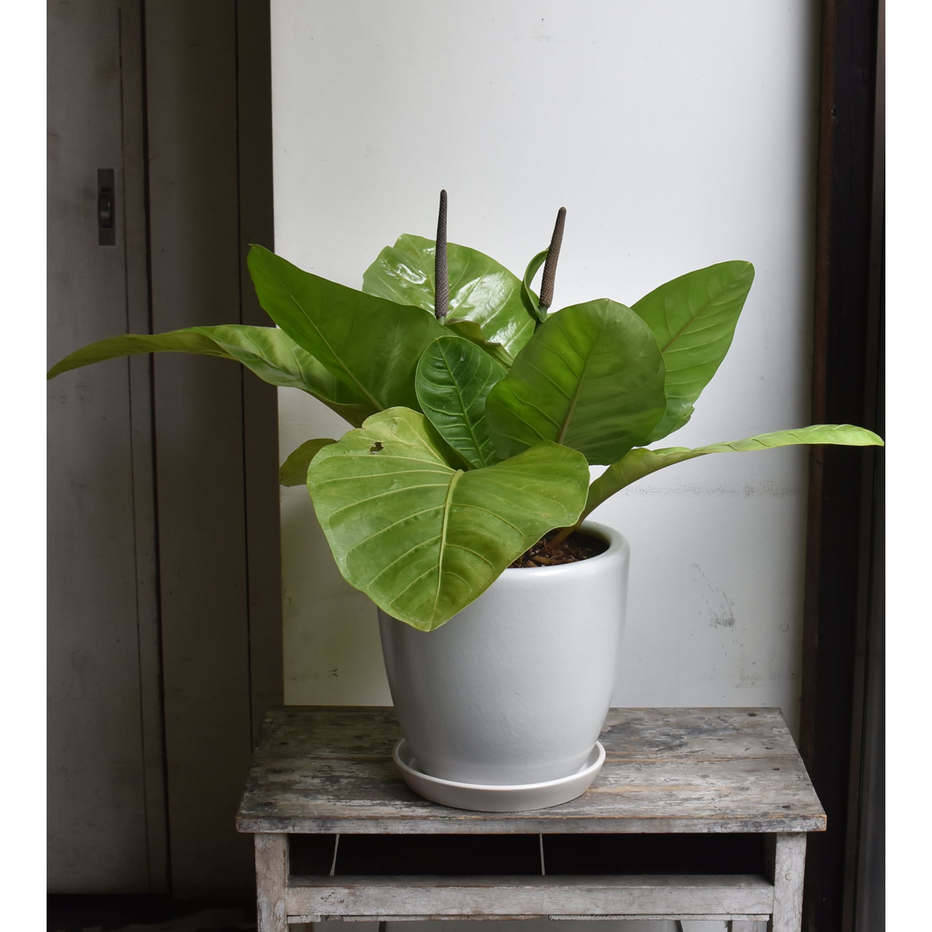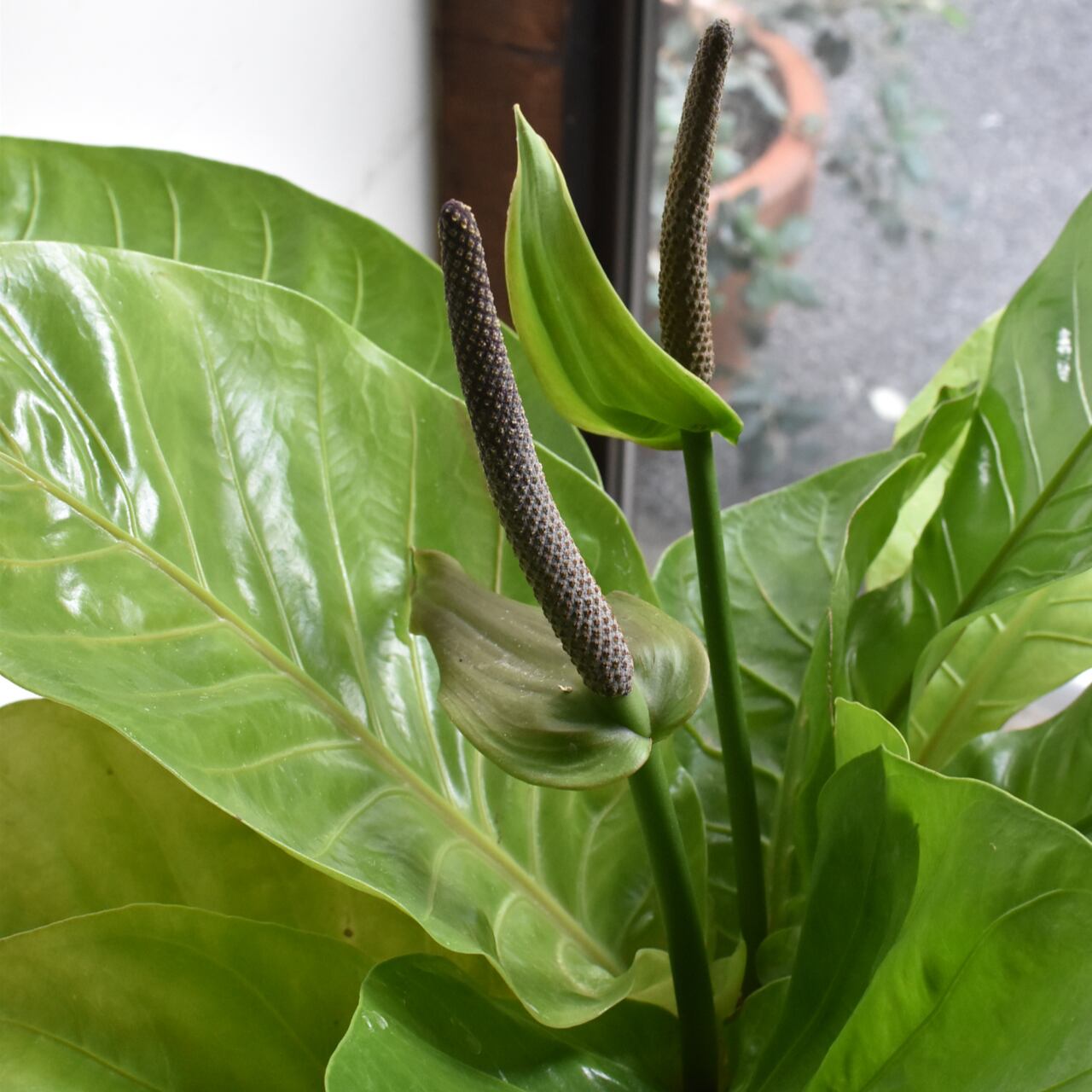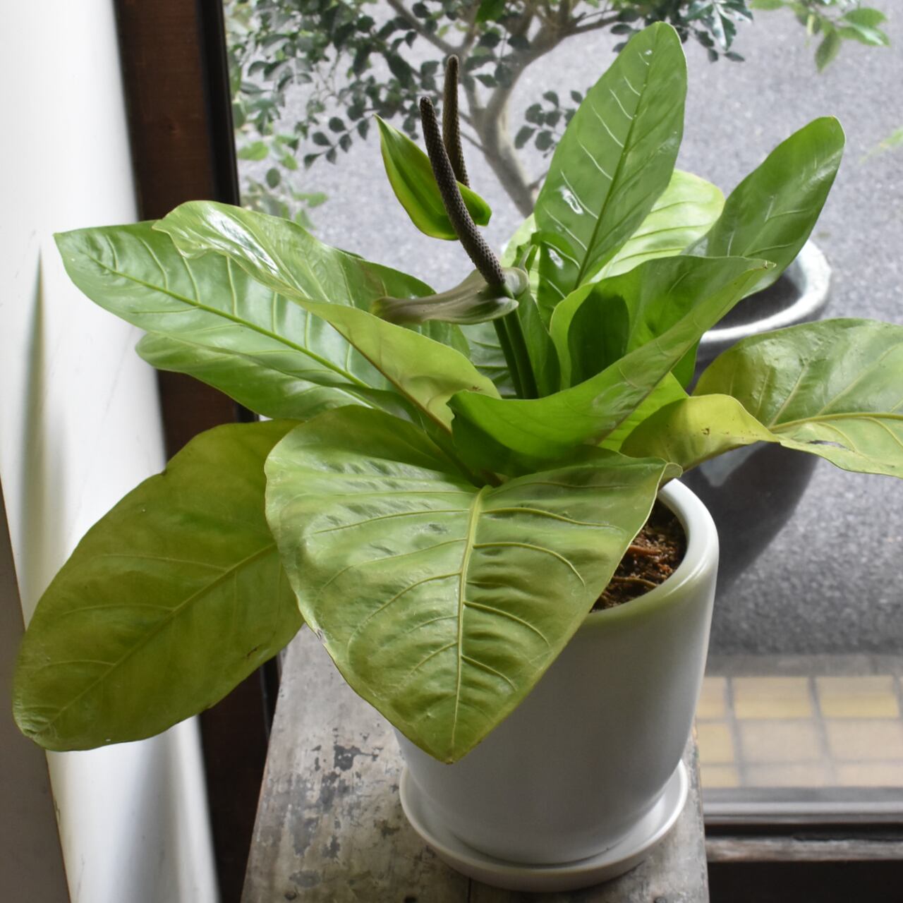 アンスリウムの中でも最も巨大葉の一つにあげられるジャングルキングの葉が丸いタイプで、ほとんど流通しない希少種です。生長が旺盛になると、順次大きな新葉を展開してきます。