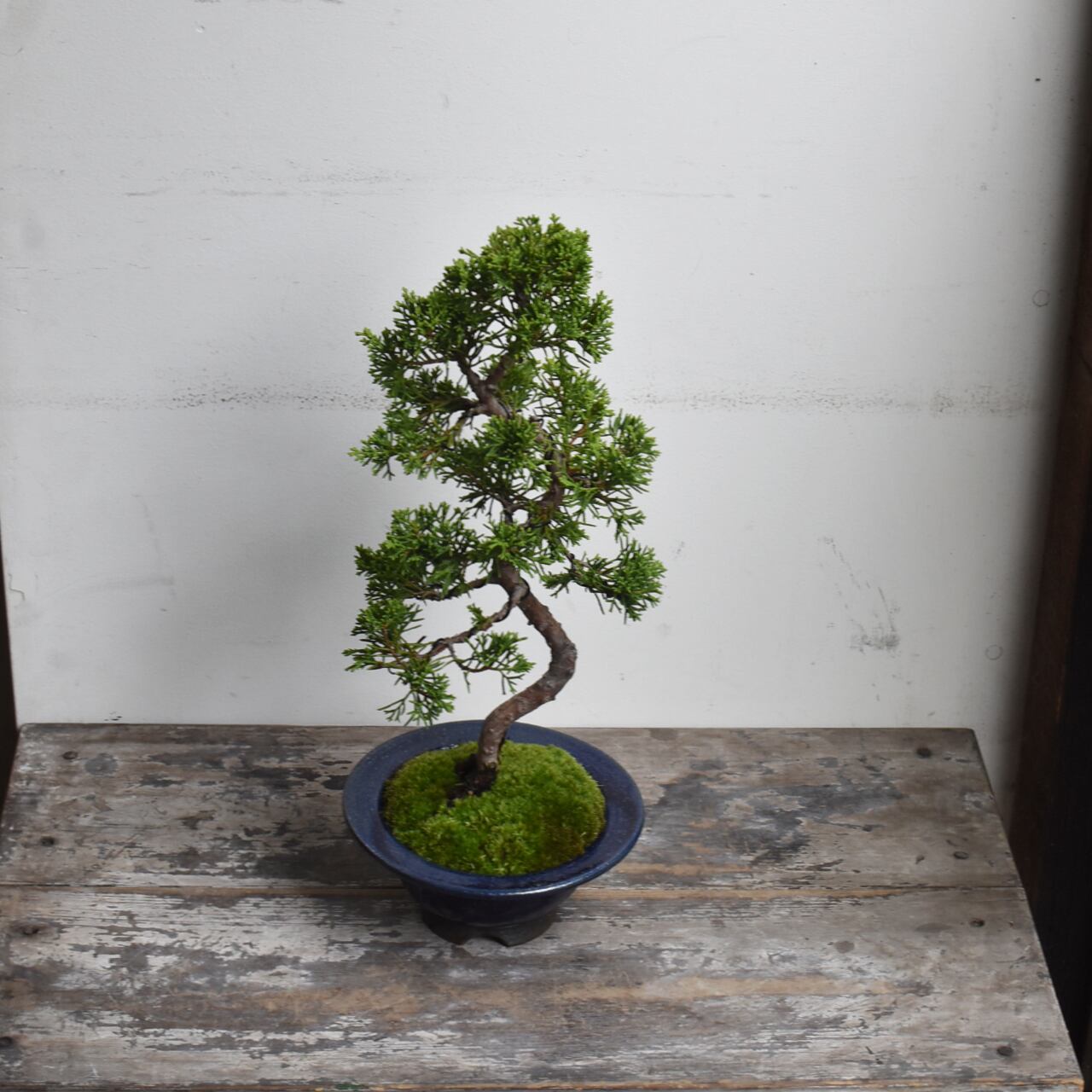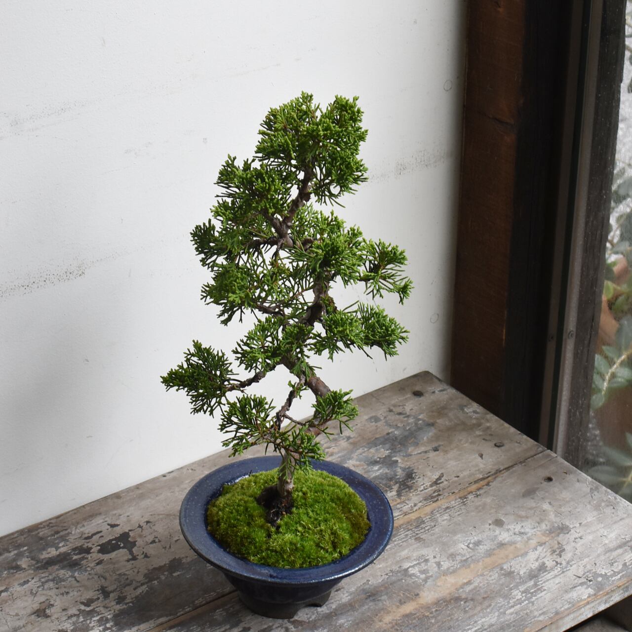 学術名はミヤマビャクシンといい、これを盆栽の世界ではシンパクと呼びます。真柏は強い曲付けにも耐え、様々な樹形を作り易いため、松に並び盆栽趣向の神髄ともいえる存在です。