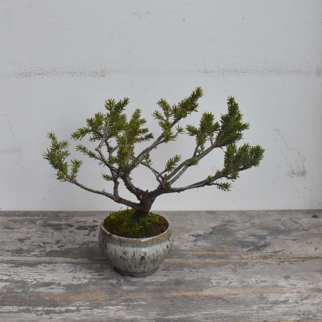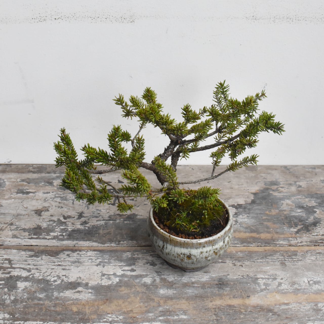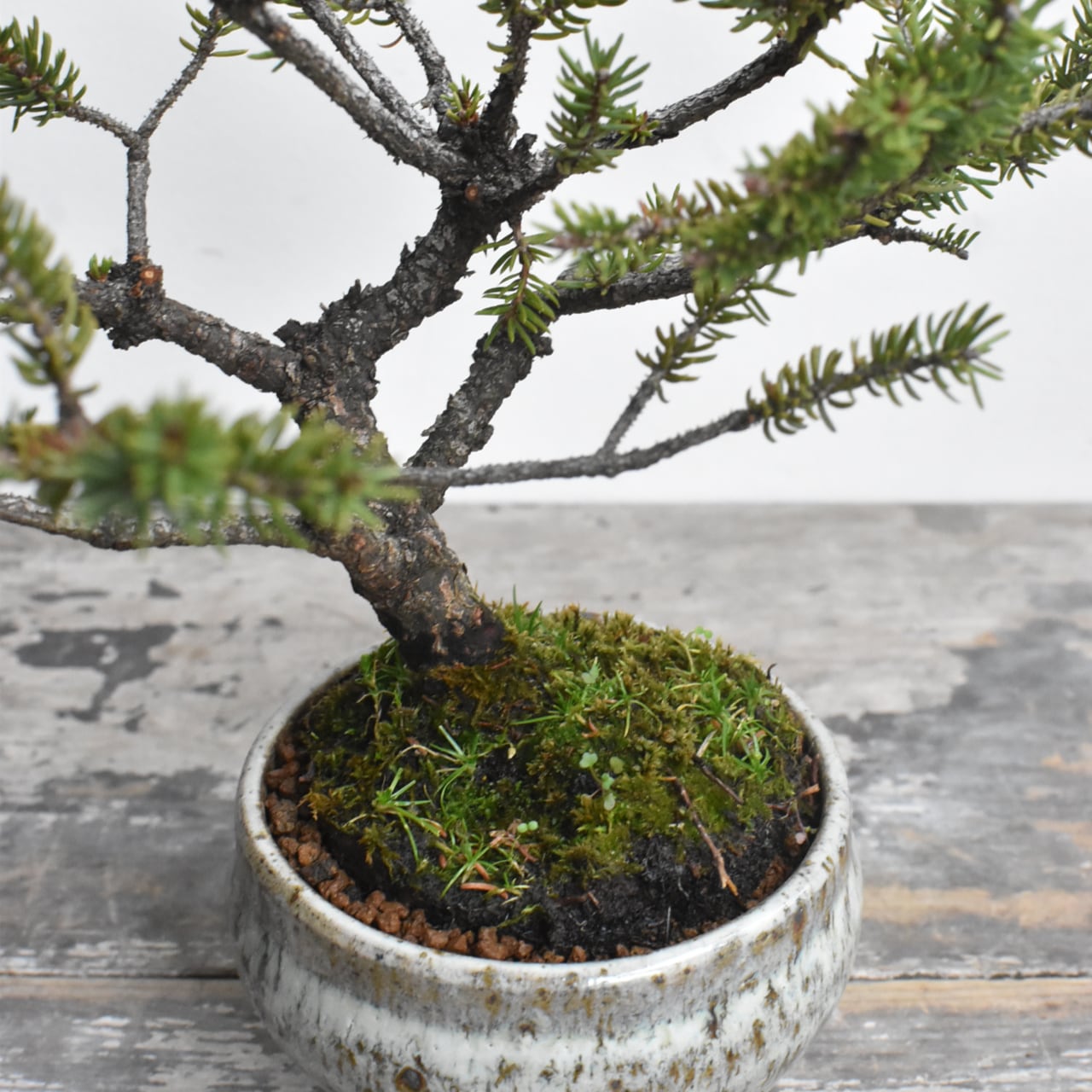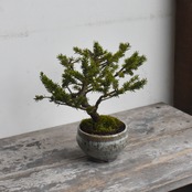 北海道原産の松で、幹肌が荒れやすいのが魅力です。小さいながらも「ヤツレ」感があり味わい深い木です。お好きなタイミングでお部屋に飾って、北海道の大自然へのイメージトリップを楽しんでください。