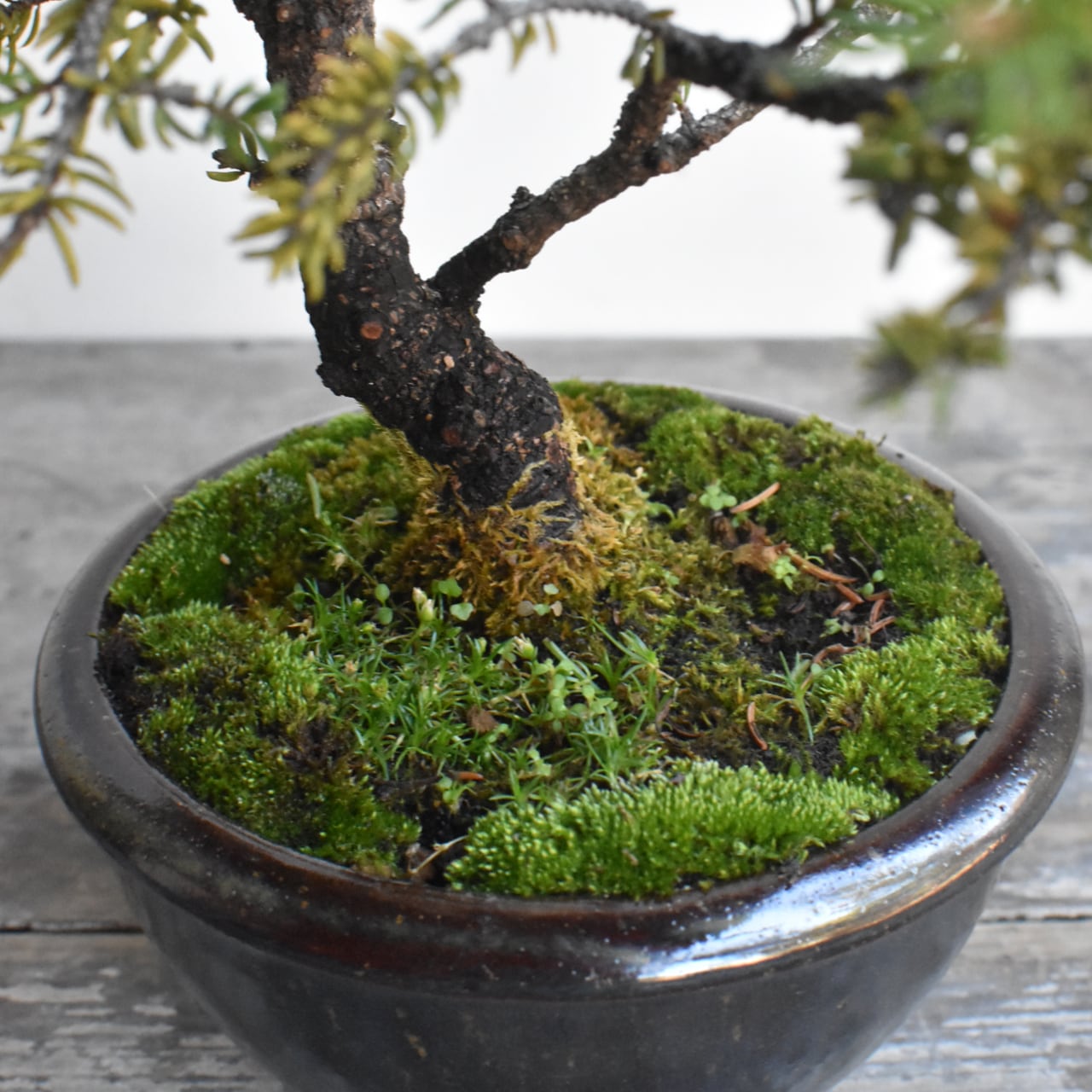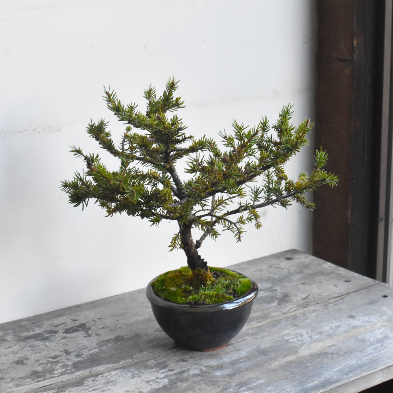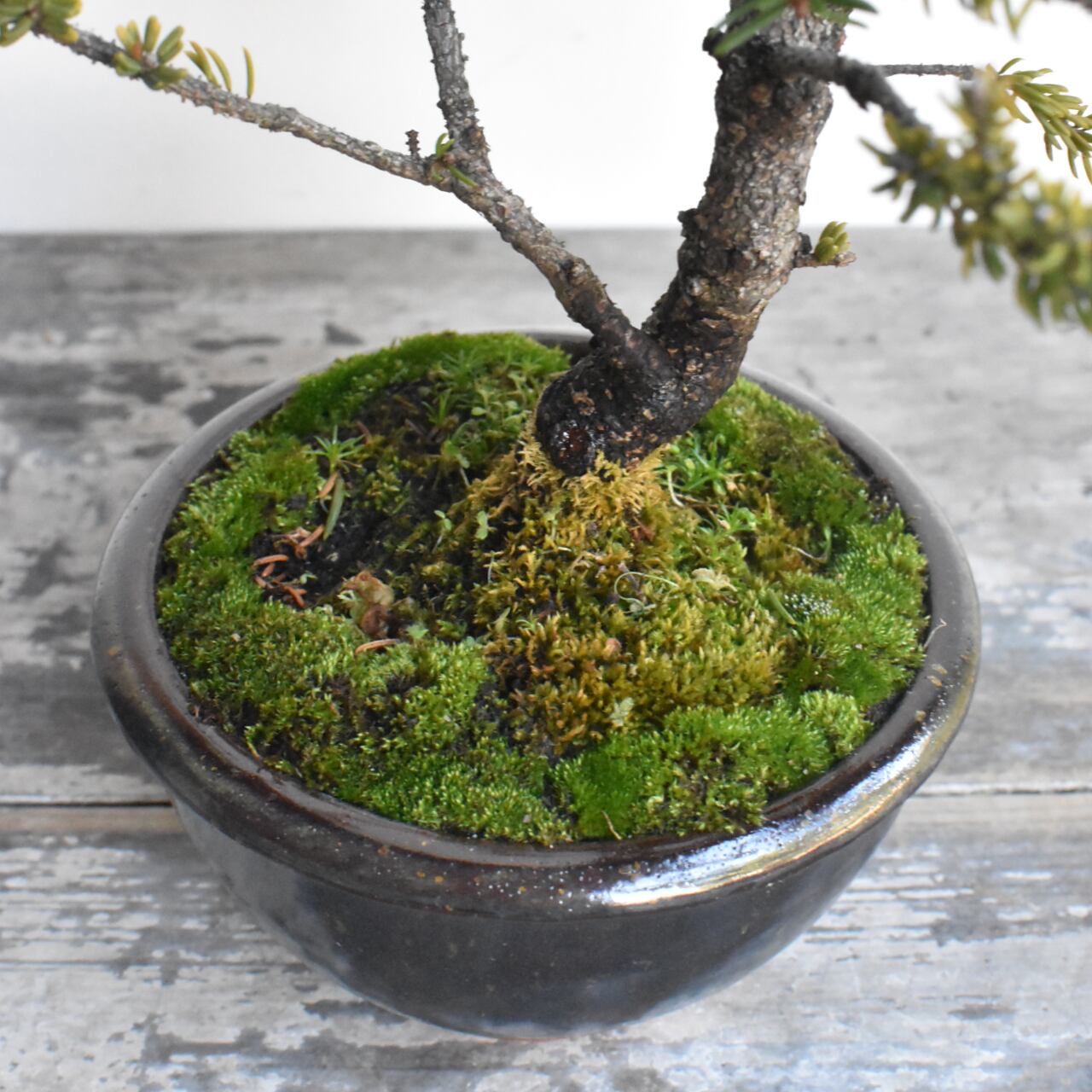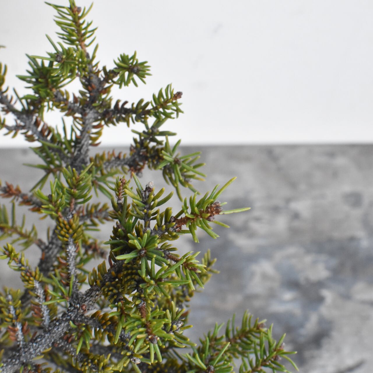 北海道原産の松で、幹肌が荒れやすいのが魅力です。小さいながらも「ヤツレ」感があり味わい深い木です。お好きなタイミングでお部屋に飾って、北海道の大自然へのイメージトリップを楽しんでください。