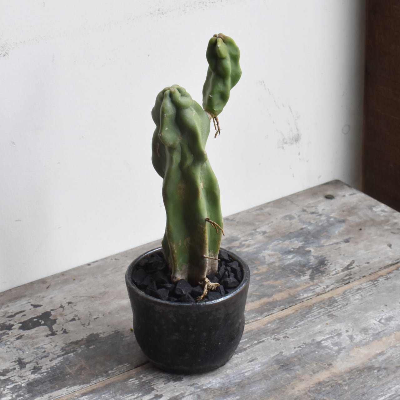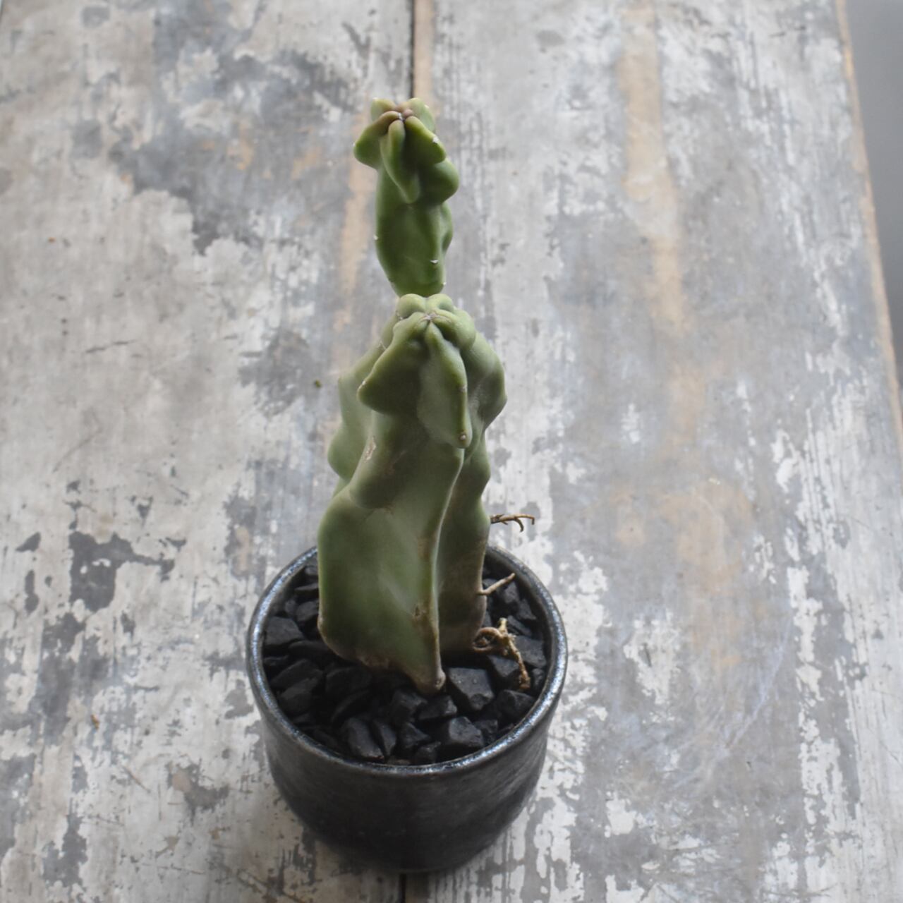 突然変異によってトゲが無くなってしまったサボテンの一種。ランダムな凸凹は様々な表情を見せてくれます。