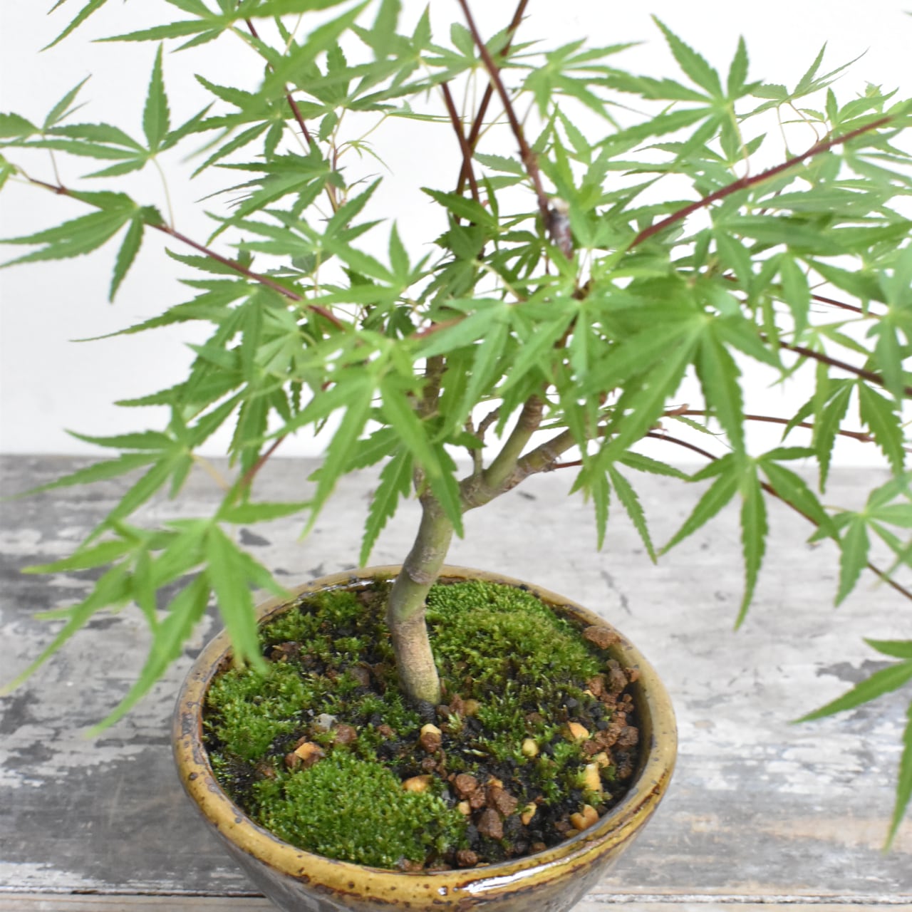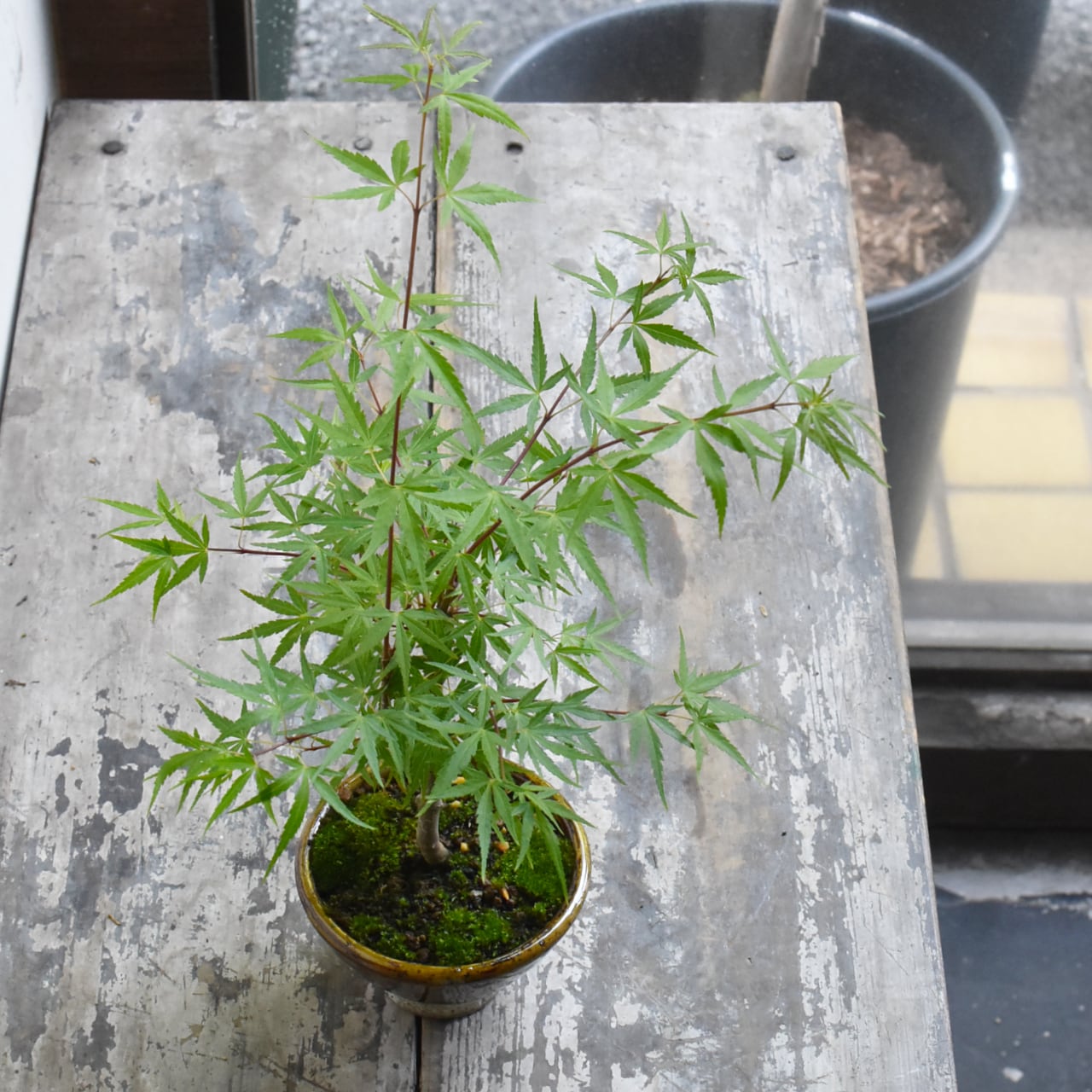 深く切れ込んだ小さな葉が密に繁る小葉性の品種。しっとりと雨に濡れる新緑のモミジの瑞々しさは、見る者の目に優しく吸い込まれるかの様です。これから秋の紅葉や冬の枯れ姿、春の芽吹きと 季節の移り変わりをドラマティックに魅せてくれます。