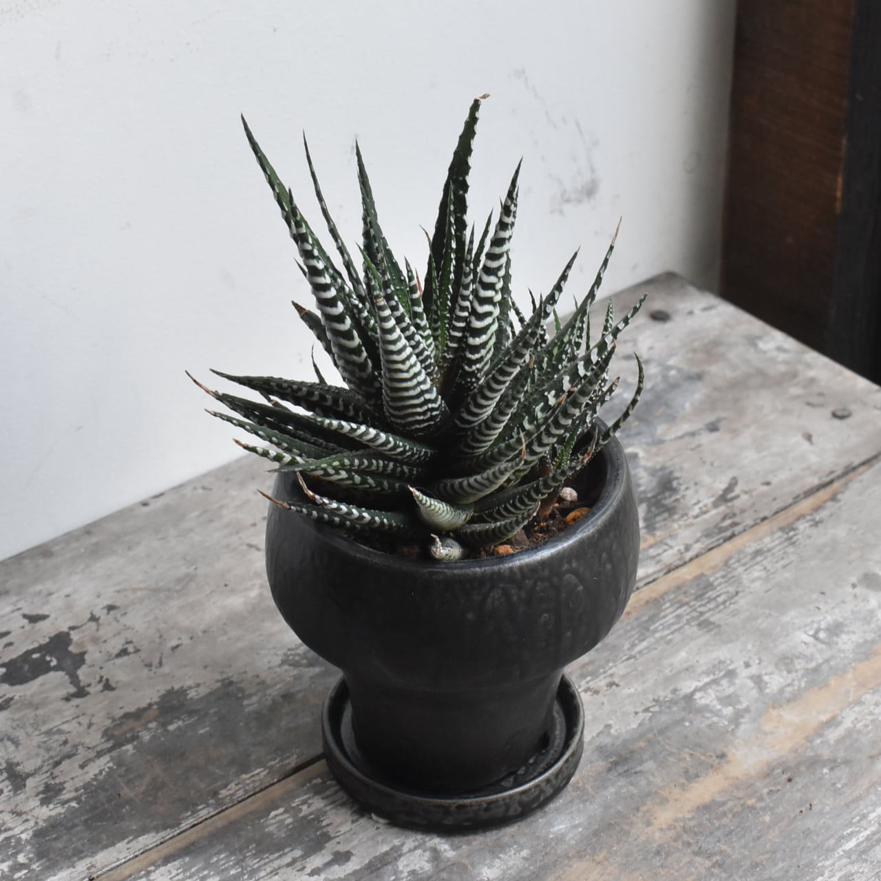 葉に現れる白い帯模様が目を惹きます。育てていると子株がどんどん増えてボリュームがアップしますが、背は高くならないので、コンパクトに管理できます。