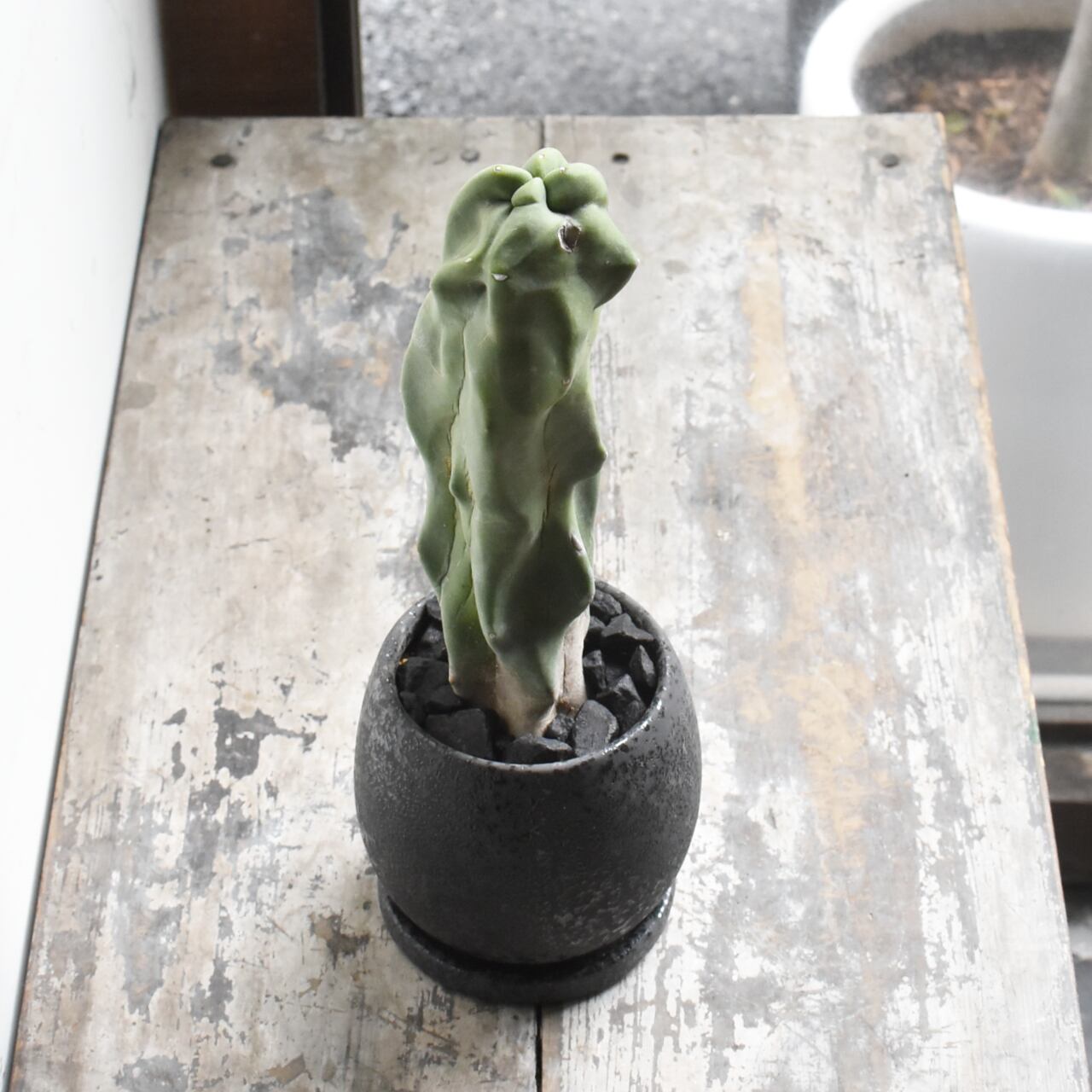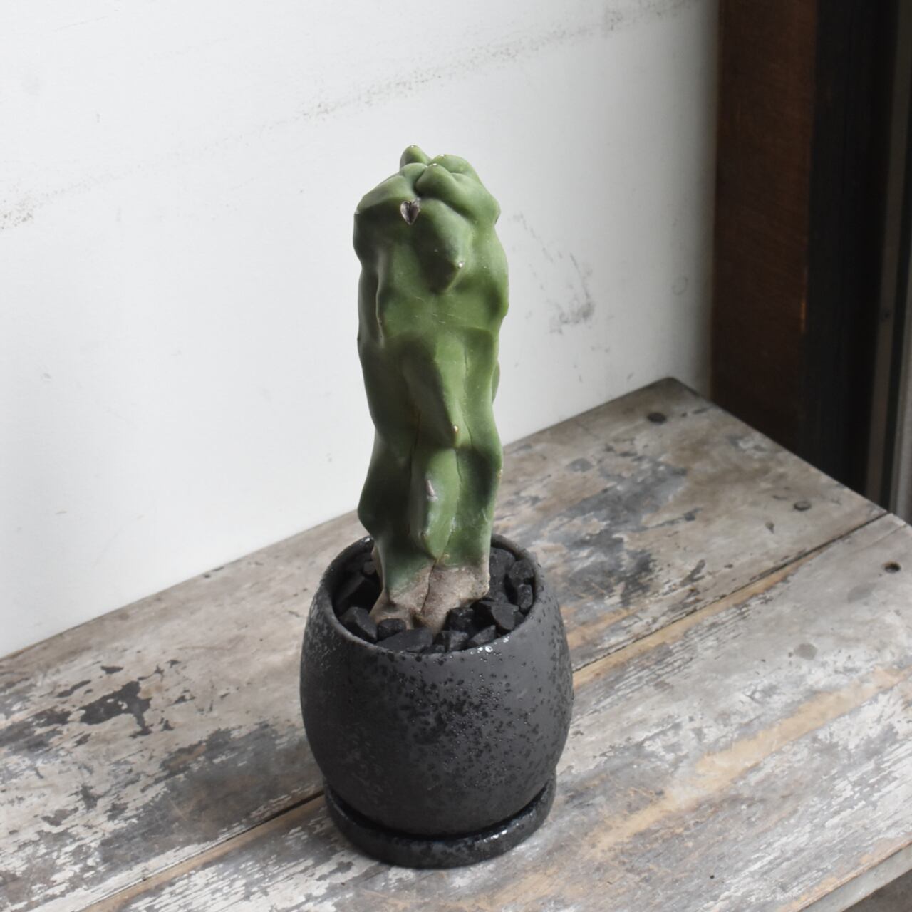 突然変異によってトゲが無くなってしまったサボテンの一種。ランダムな凸凹は様々な表情を見せてくれます。
