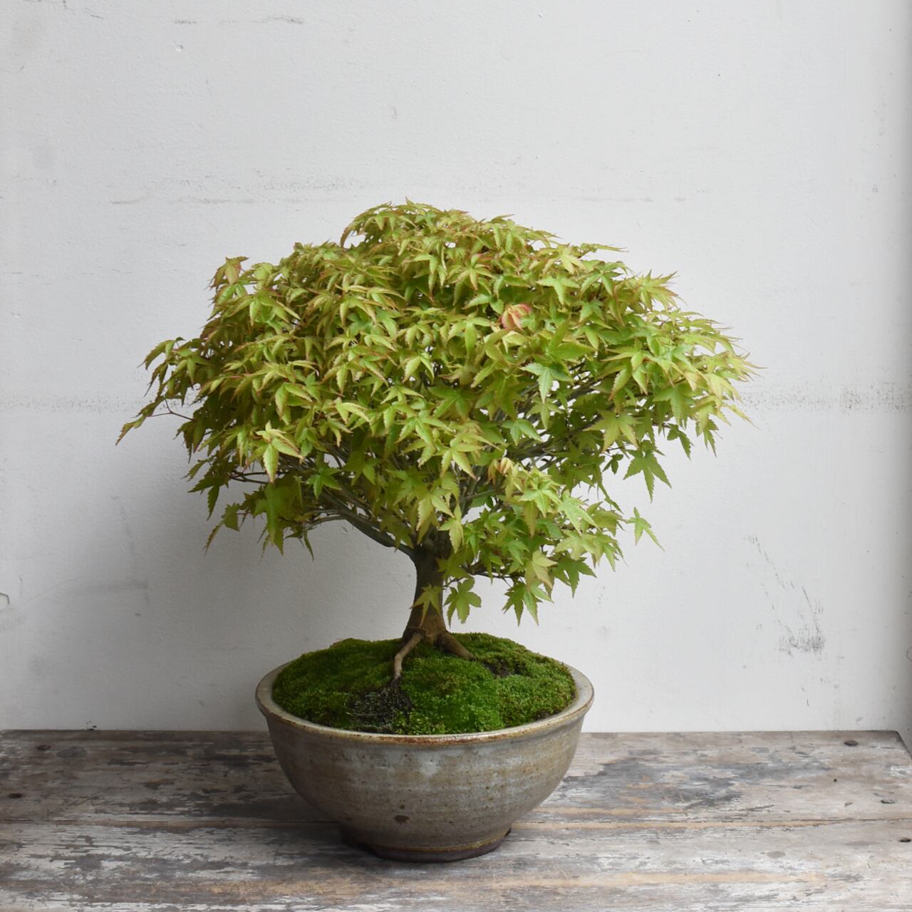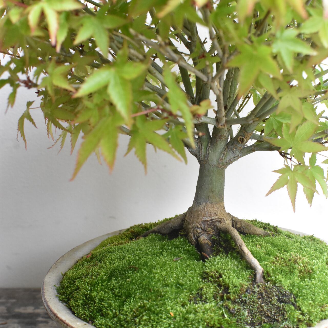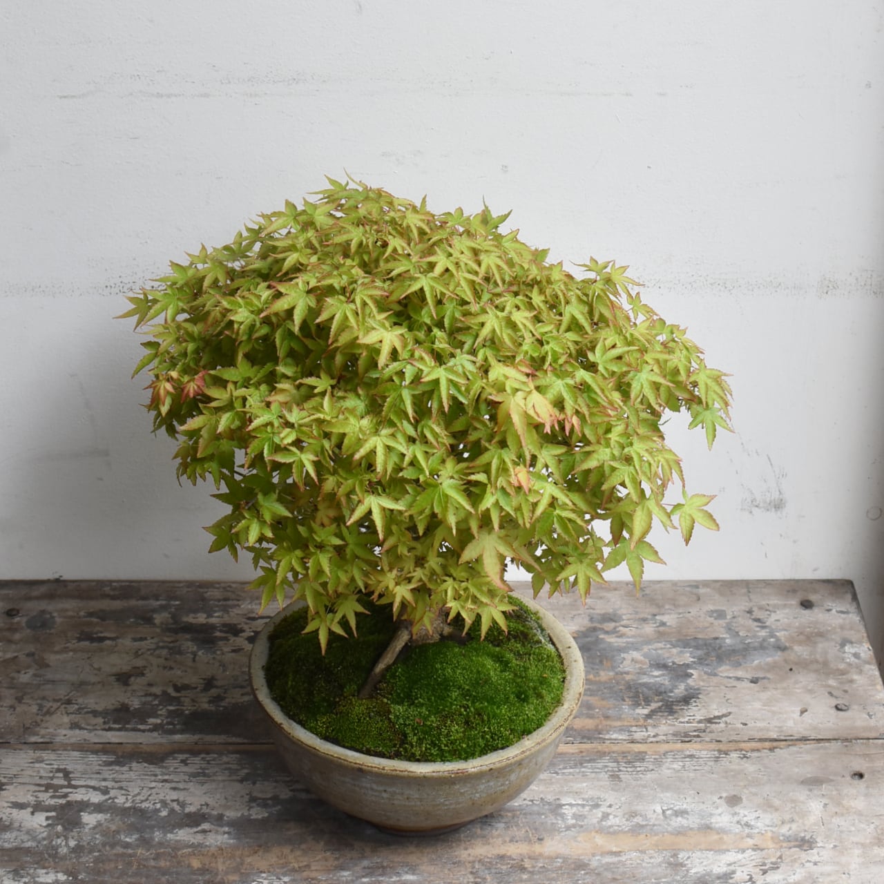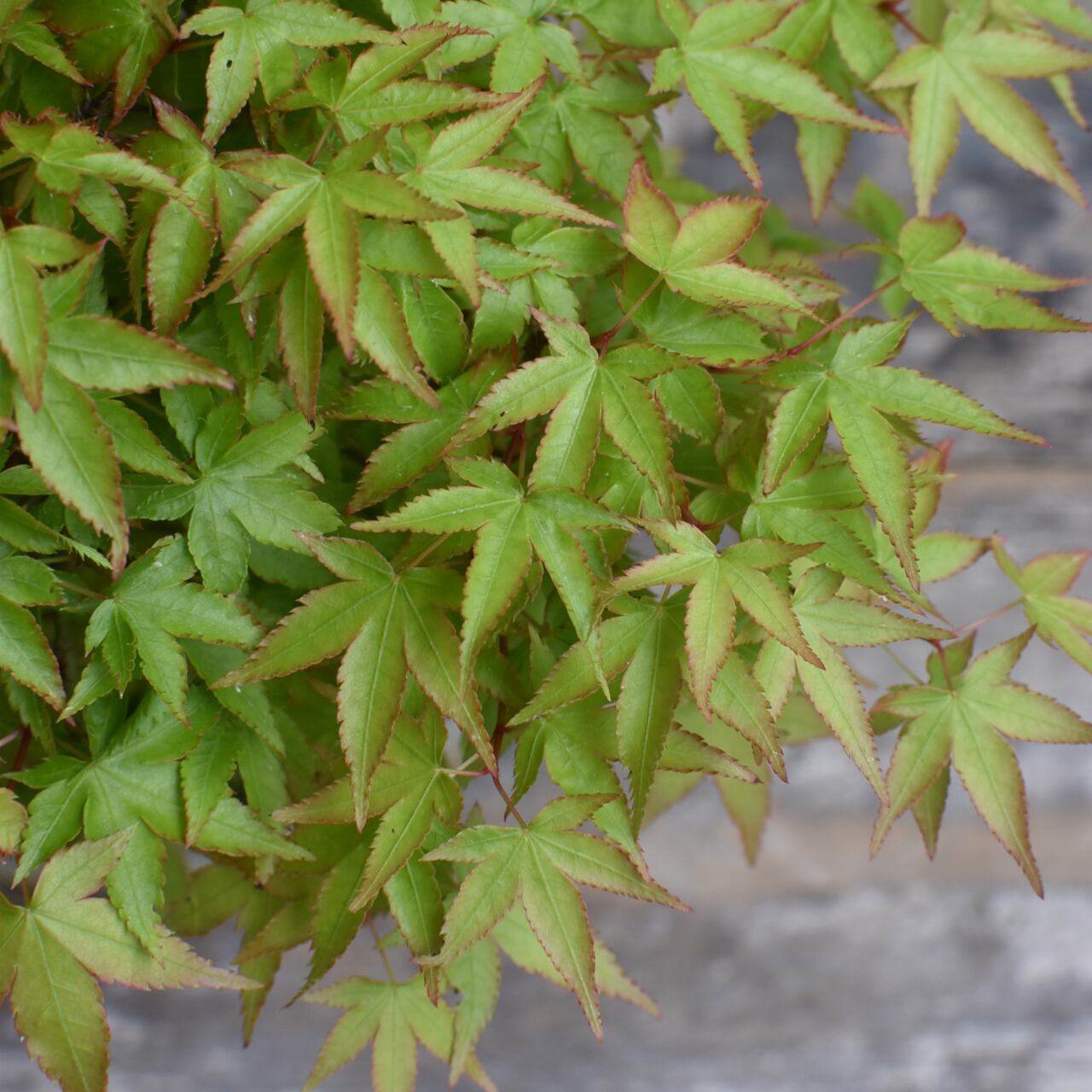 モミジの中でも葉が小さく、細やかに分かれる枝ぶりが特徴の品種です。瑞々しい新緑から、秋の紅葉、冬枯れの姿と、季節ごとに変わりゆく色彩を楽しんでいただけます。