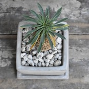 とてもチャーミングな姿で今にも笑い声が聞こえてきそうな程、根っから明るい人気者です。ゆっくりマイペースに生長します。やがて脇から子株が誕生することも。世話がやけないのも魅力のひとつ。傍で育てるだけで元気になれそうな一鉢です。