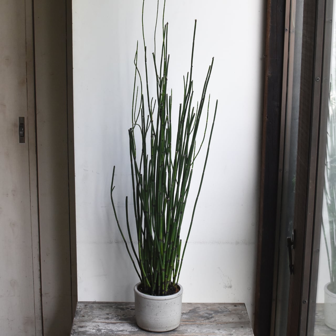 昔ながらの馴染み深い植物ですが、鉢植えにするとモダンな佇まいに。潔くのびる葉がオブジェのようで飽きのこない一鉢です。